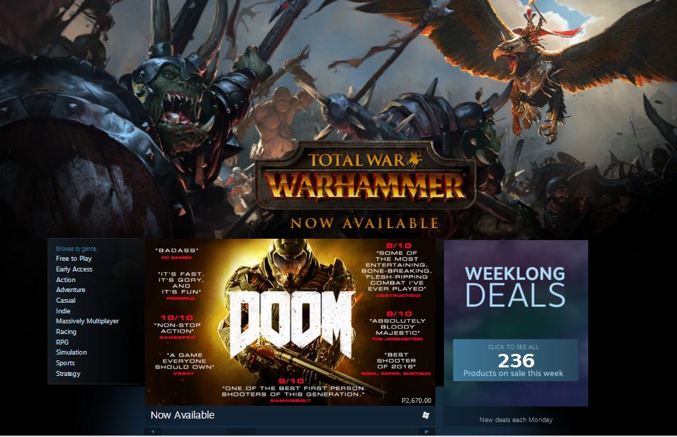 A screenshot of the Steam store, which will soon be peppered with various discounted games in lieu of Steam Summer Sale 2016. | steampowered.com